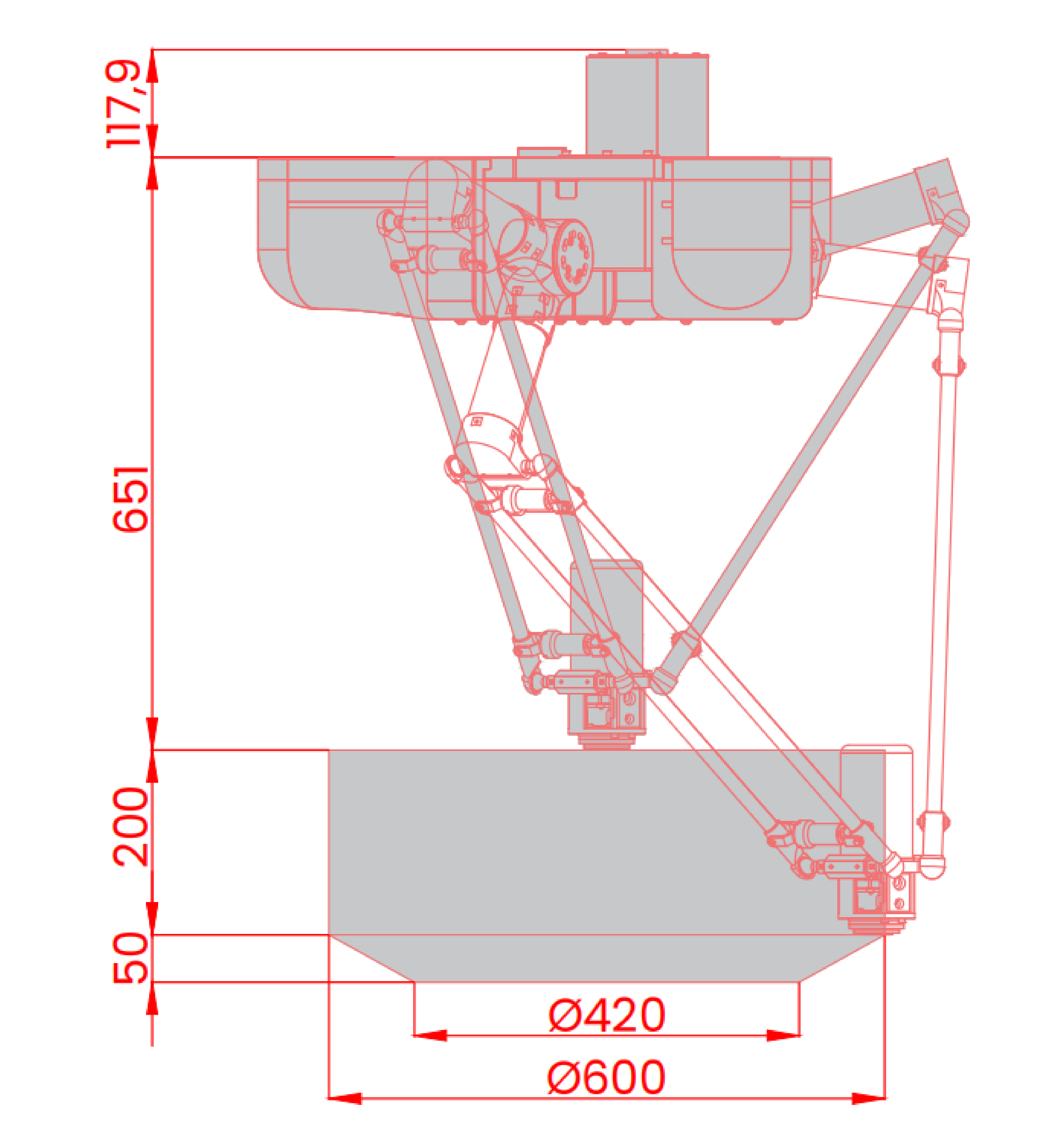 经典高速并联机器人构型,具有沿三维空间XYZ轴平动和绕Z轴旋转的功能特点,通过搭配高精度机器视觉系统,适于食品、医药等行业的高速生产作业,主要用于轻小散乱物料的装配、搬运、分拣等。