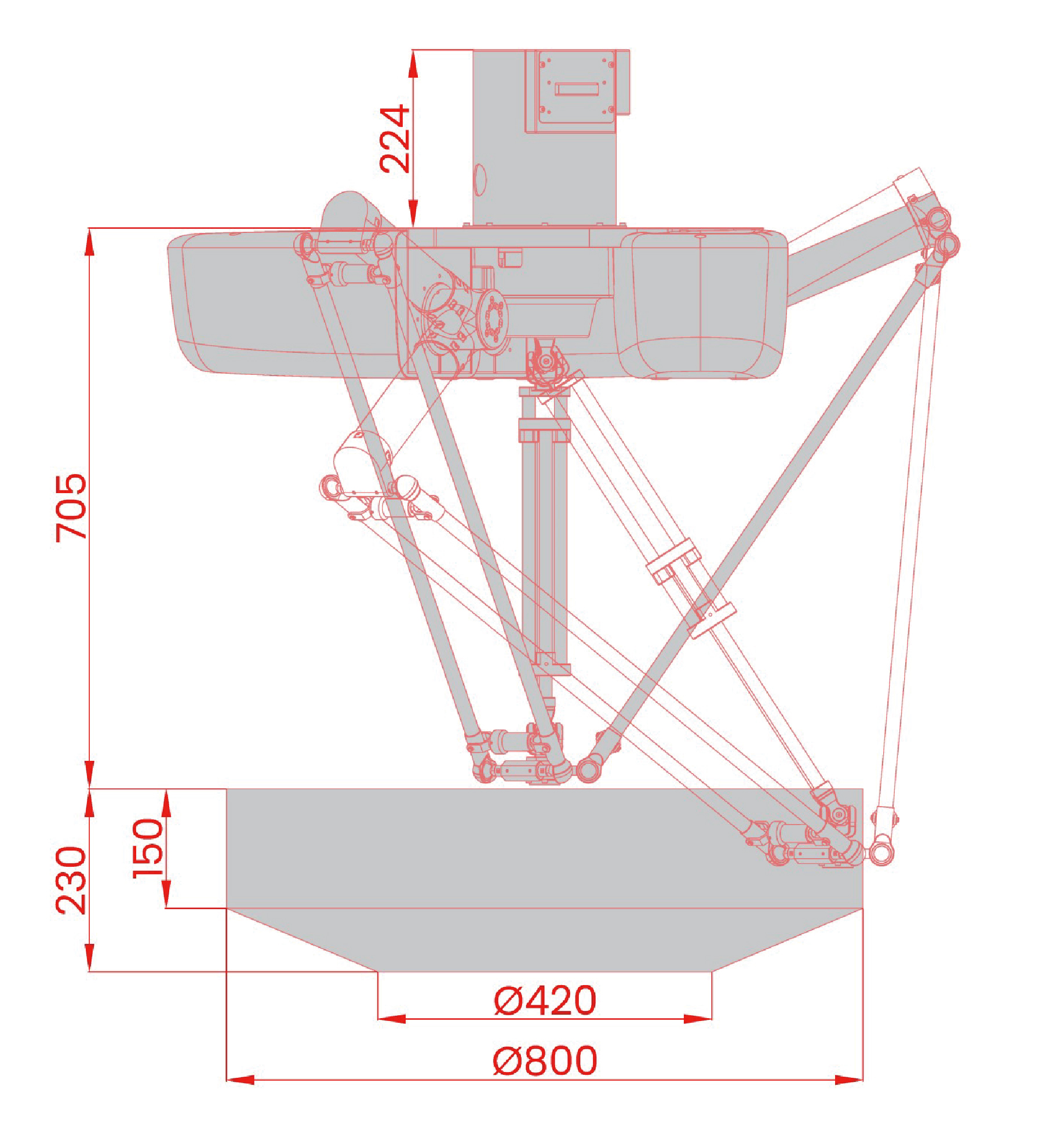 经典高速并联机器人构型,具有沿三维空间XYZ轴平动和绕Z轴旋转的功能特点,通过搭配高精度机器视觉系统,适于食品、医药等行业的高速生产作业,主要用于轻小散乱物料的装配、搬运、分拣等。