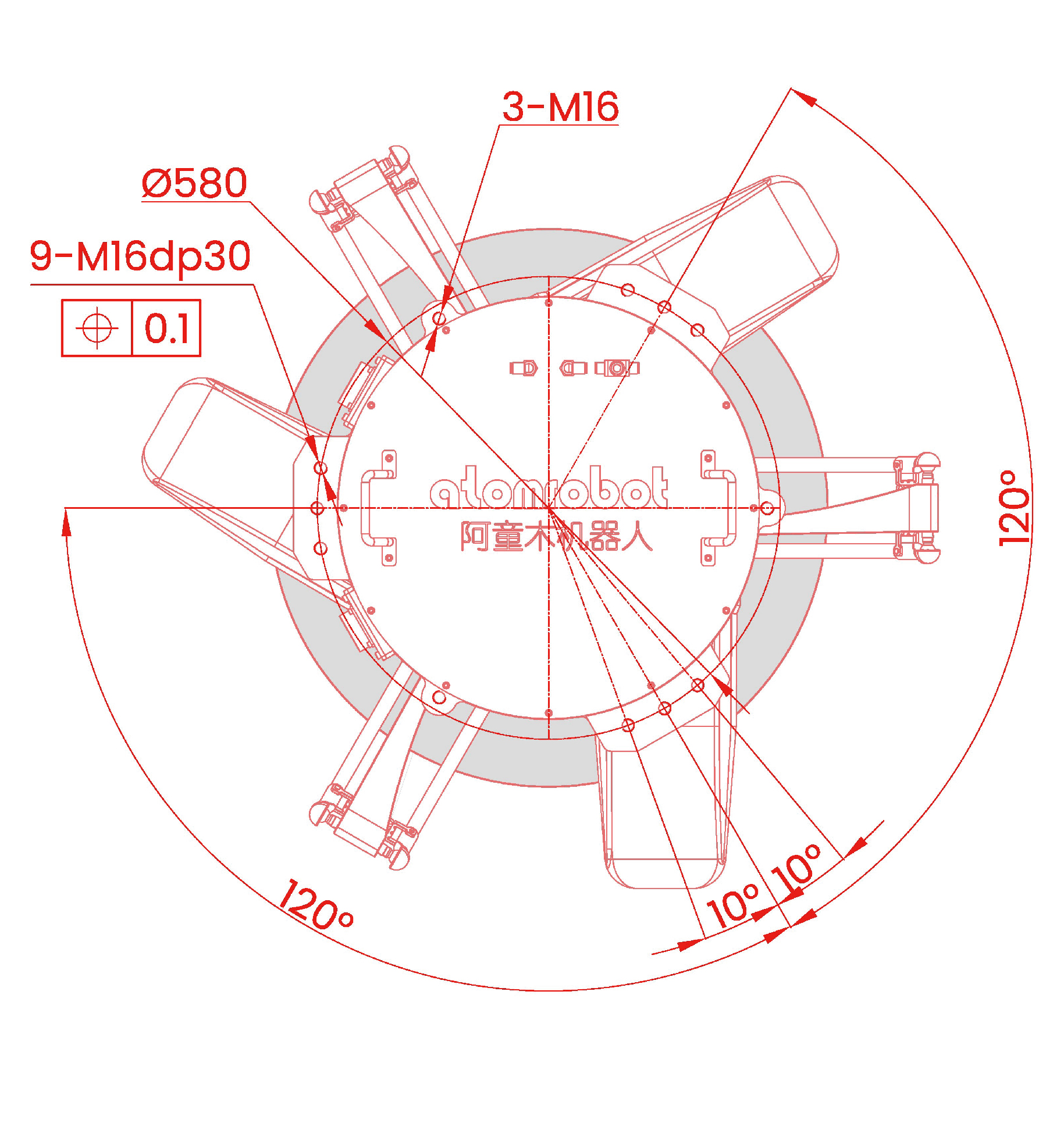 • 01.外形尺寸及运动范围(mm)