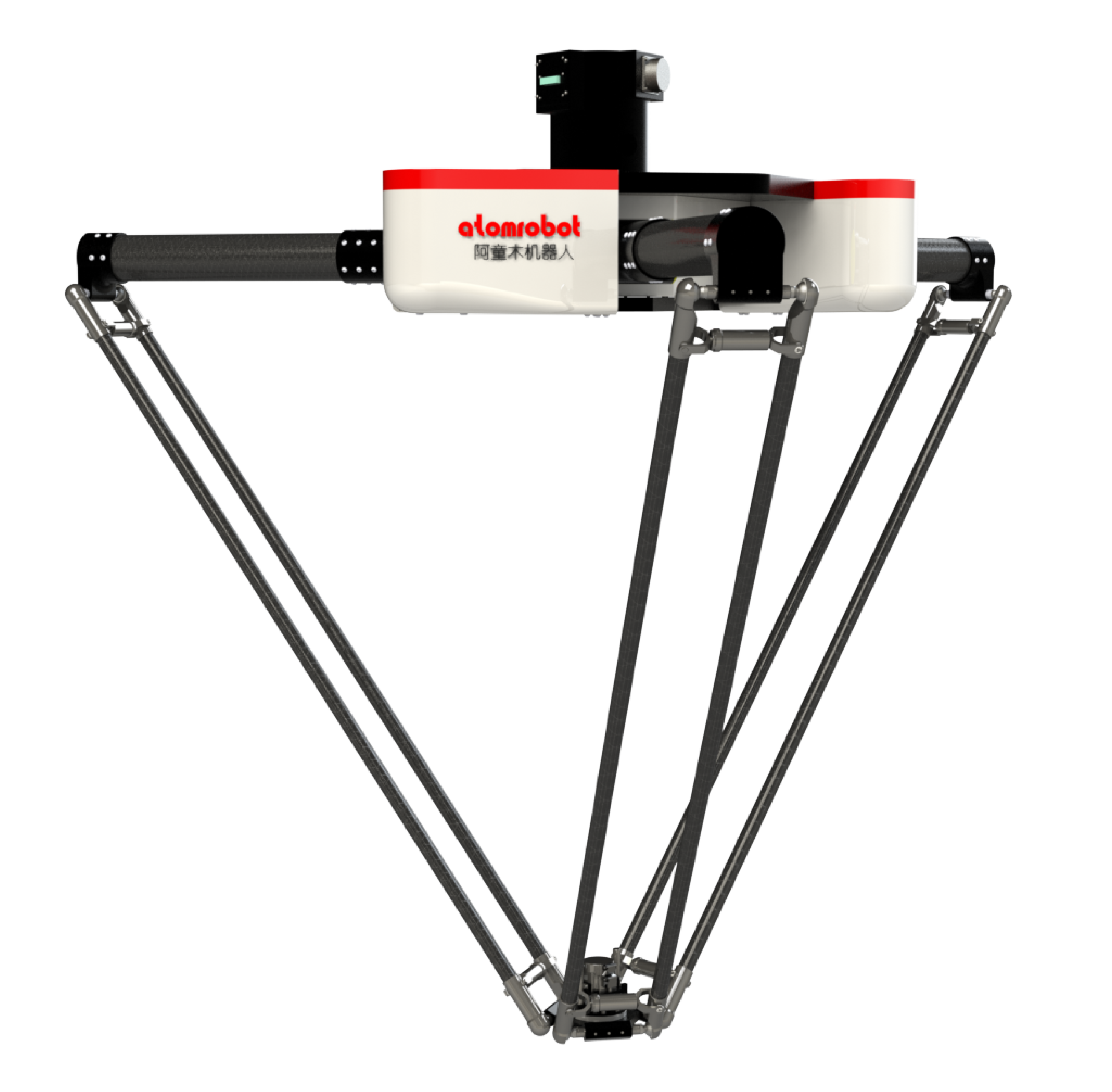 经典高速并联机器人构型,具有沿三维空间XYZ轴平动和绕Z轴旋转的功能特点,通过搭配高精度机器视觉系统,适于食品、医药等行业的高速生产作业,主要用于轻小散乱物料的装配、搬运、分拣等。