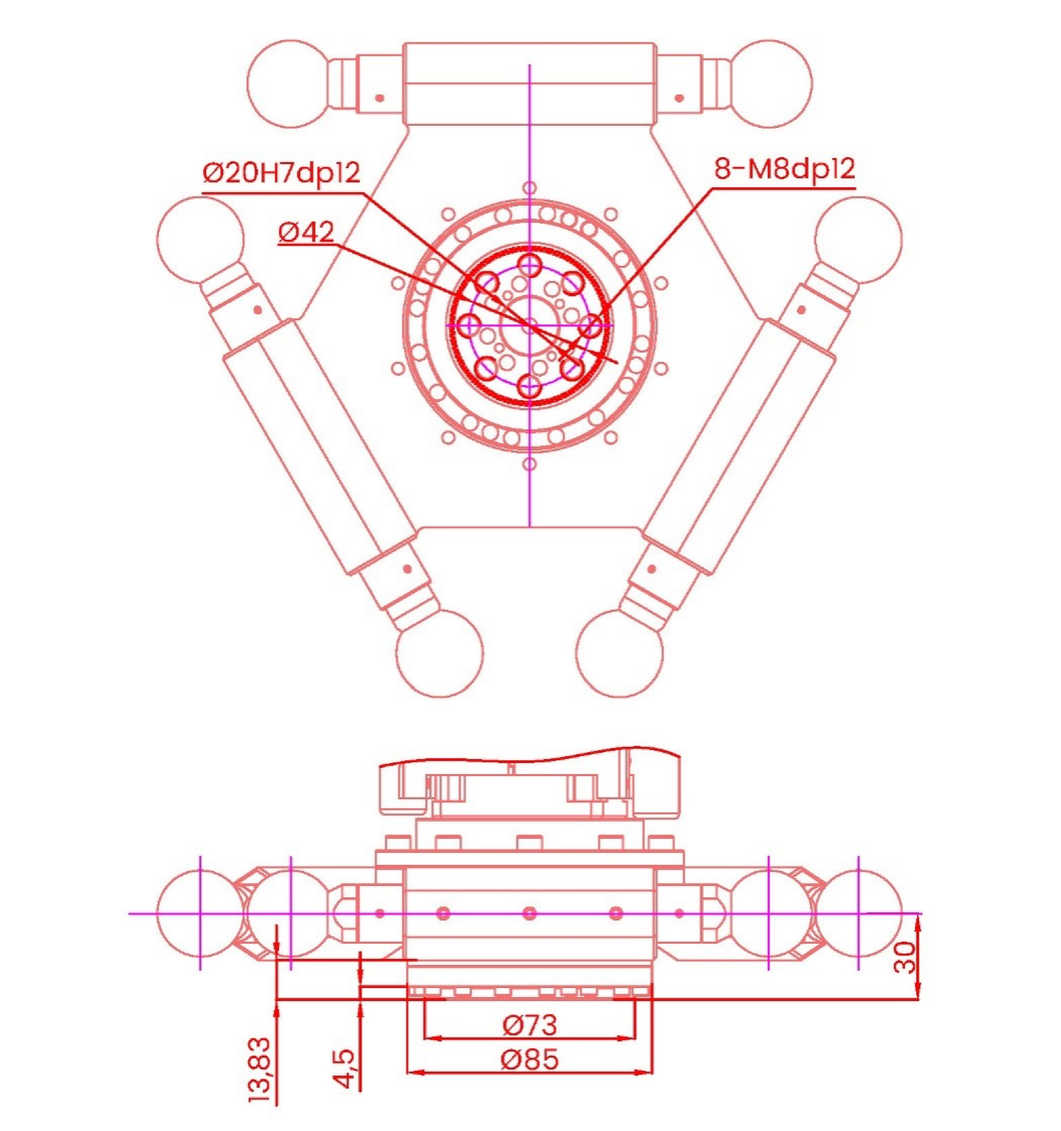 01.外形尺寸及运动范围(mm)