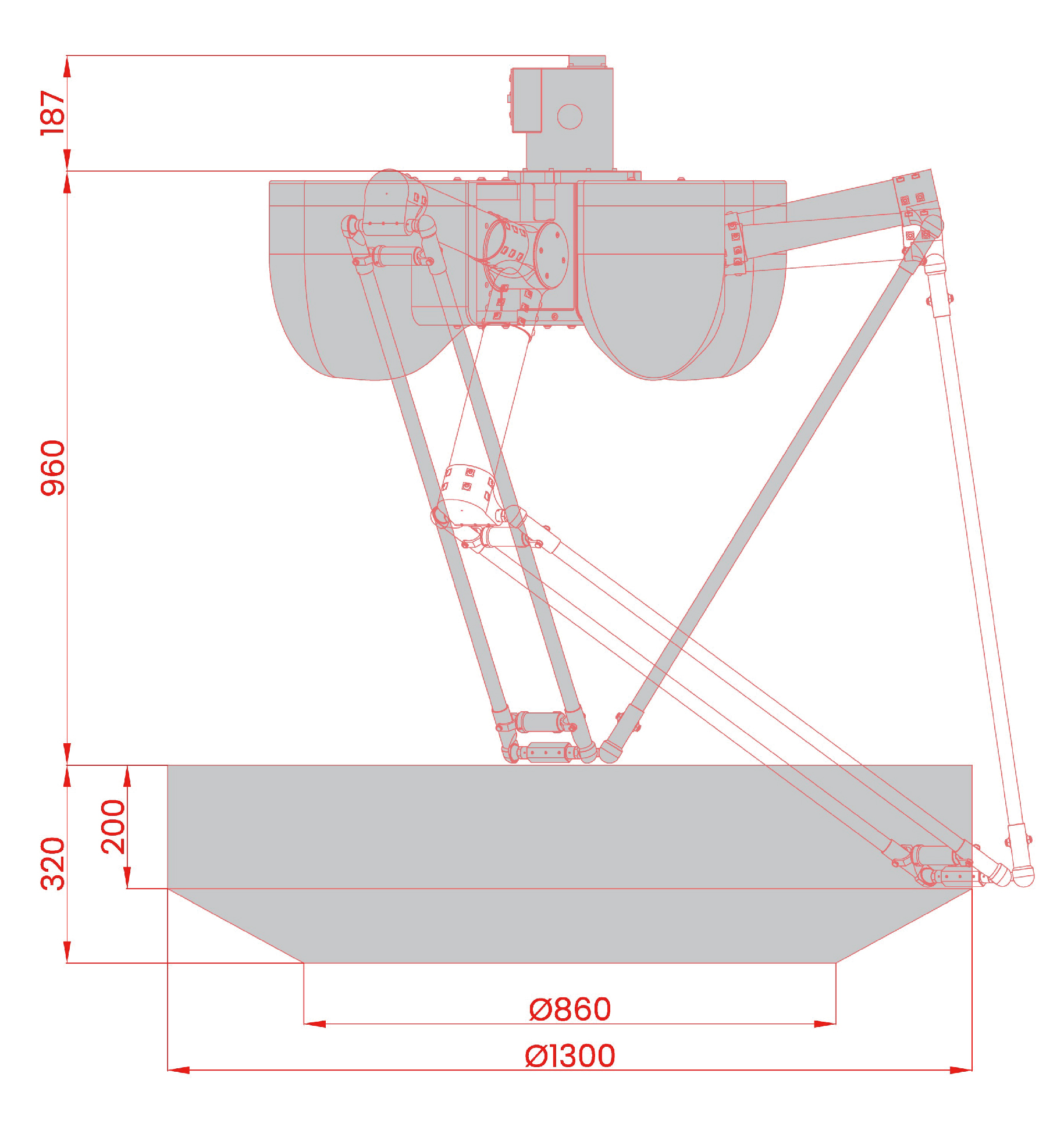 经典高速并联机器人构型,具有沿三维空间XYZ轴平动和绕Z轴旋转的功能特点,通过搭配高精度机器视觉系统,适于食品、医药等行业的高速生产作业,主要用于轻小散乱物料的装配、搬运、分拣等。